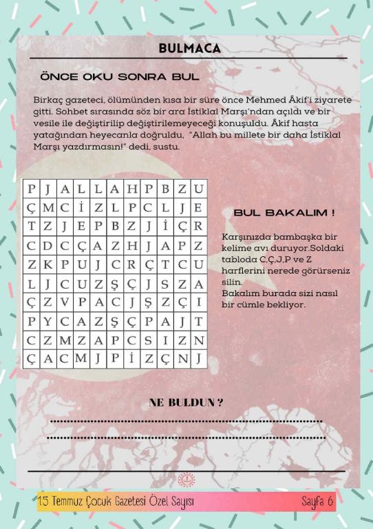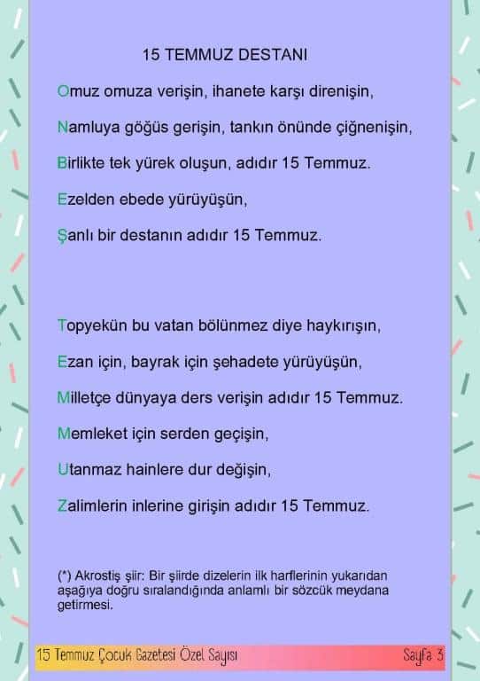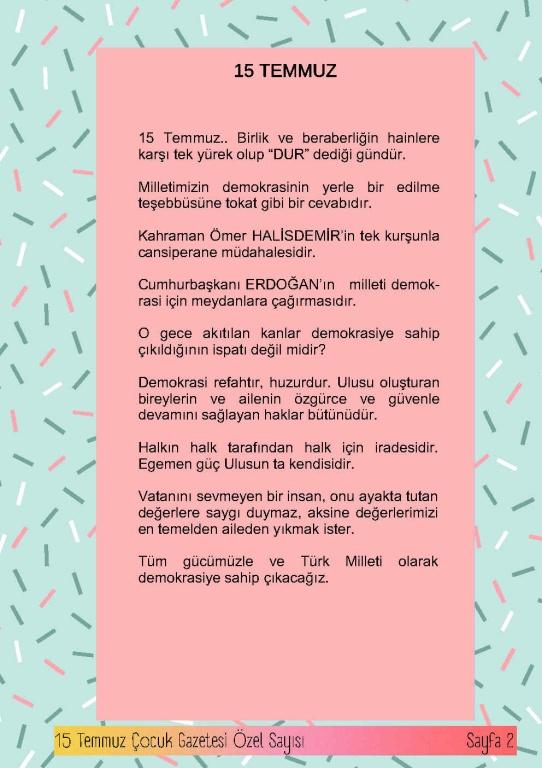 15 Temmuz Çocuk Gazetesi Özel Sayısı